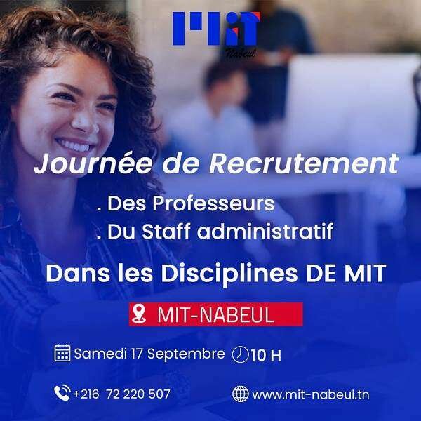 MIT Nabeul / organise une [𝐉𝐨𝐮𝐫𝐧𝐞𝐞 𝐝𝐞 𝐫𝐞𝐜𝐫𝐮𝐭𝐞𝐦𝐞𝐧𝐭]