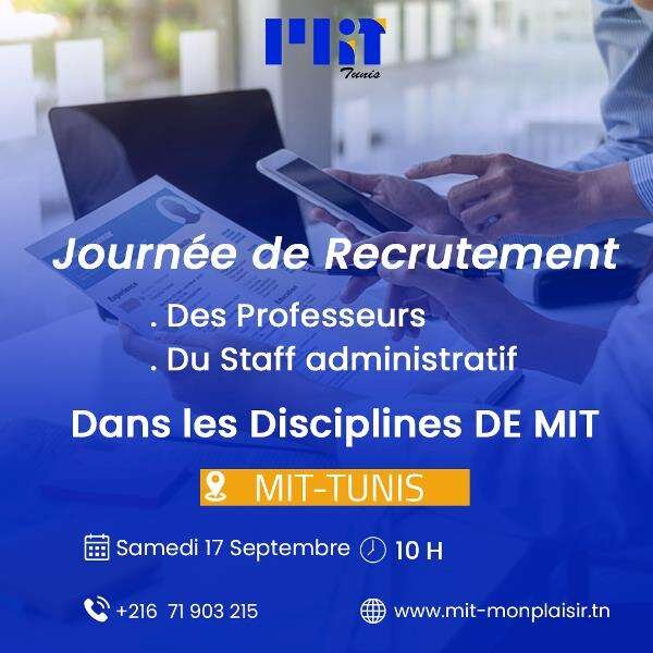 MIT Tunis / organise une [𝐉𝐨𝐮𝐫𝐧𝐞𝐞 𝐝𝐞 𝐫𝐞𝐜𝐫𝐮𝐭𝐞𝐦𝐞𝐧𝐭]
