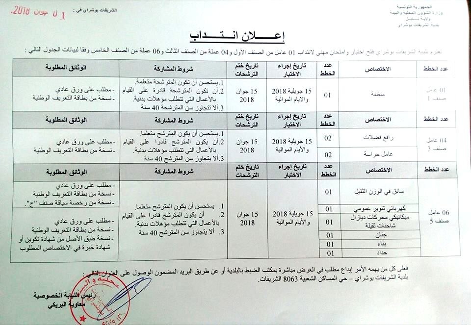 إعلان انتداب لفائدة بلدية الشريفات بوشراي Annonces إعلان انتداب عملة من الصنف الأول والثالث والخامس لفائدة بلدية الشريفات بوشراي Partager : Cliquez pour partager sur Facebook(ouvre dans une nouvelle fenêtre) Facebook Cliquez pour partager sur LinkedIn(ouvre dans une nouvelle fenêtre) LinkedIn Plus Cliquer pour partager sur X(ouvre dans une nouvelle fenêtre) X Cliquer pour envoyer un lien par e-mail à un ami(ouvre dans une nouvelle fenêtre) E-mail Cliquez pour partager sur WhatsApp(ouvre dans une nouvelle fenêtre) WhatsApp Facebook