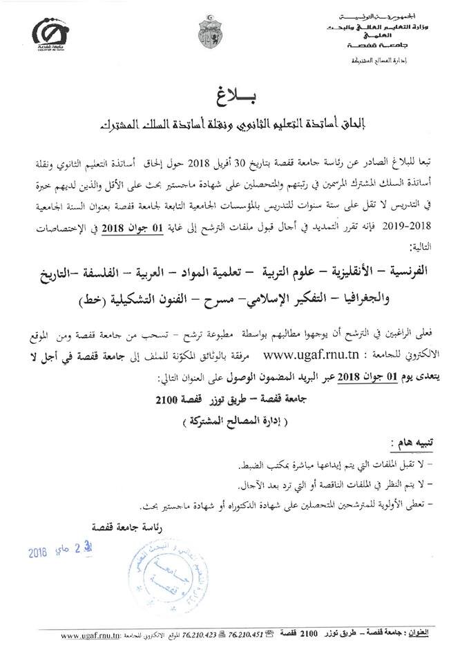 الحاق اساتذة التعليم الثانوي للتدريس بالجامعة Actualités, Annonces الحاق اساتذة التعليم الثانوي للتدريس بالجامعة Partager : Cliquez pour partager sur Facebook(ouvre dans une nouvelle fenêtre) Facebook Cliquez pour partager sur LinkedIn(ouvre dans une nouvelle fenêtre) LinkedIn Plus Cliquer pour partager sur X(ouvre dans une nouvelle fenêtre) X Cliquer pour envoyer un lien par e-mail à un ami(ouvre dans une nouvelle fenêtre) E-mail Cliquez pour partager sur WhatsApp(ouvre dans une nouvelle fenêtre) WhatsApp Facebook