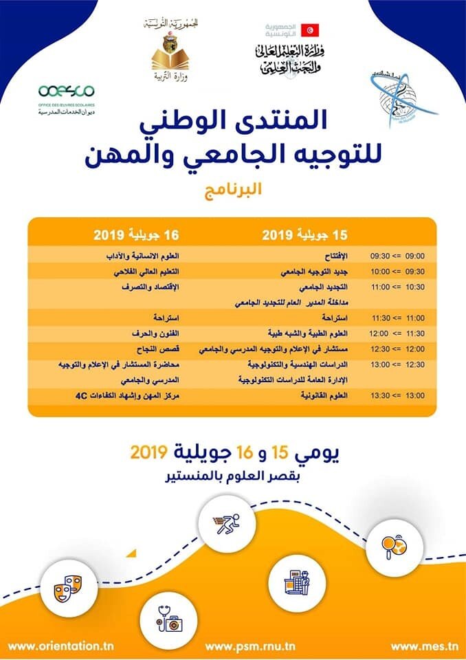وسيتم خلال هذا المنتدى تنظيم معارض للجامعات وتقديم محاضرات حول عروض التكوين ومحتوى الشعب بالإضافة الى تأمين مقابلات مباشرة مع الناجحين الجدد في امتحان البكالوريا وأوليائهم.