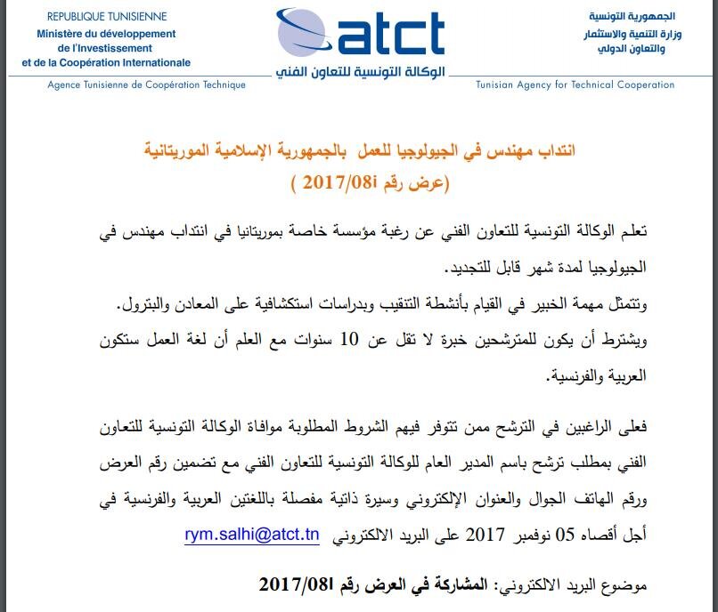 انتداب مهندس في الجيولوجيا للعمل بالجمهورية الإسلامية الموريتانية