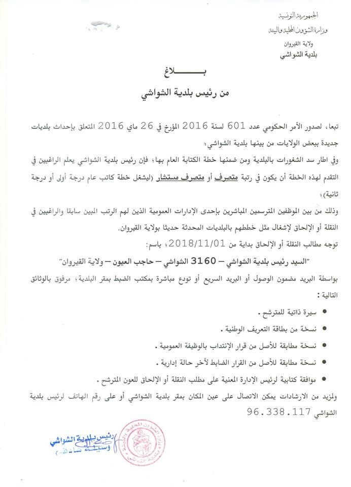 بلدية الشواشي // بلاغ انتداب Annonces S’abonner à notre NEWSLETTER Recevoir tous les offres d'emploi ✅ Regarder la chaine à Recruter.TV بلدية الشواشي بلاغ انتداب S’abonner à notre NEWSLETTER Recevoir tous les offres d'emploi ✅ Regarder la chaine à Recruter.TV Partager : Cliquez pour partager sur Facebook(ouvre dans une nouvelle fenêtre) Facebook Cliquez pour partager sur LinkedIn(ouvre dans une nouvelle fenêtre) LinkedIn Plus Cliquer pour partager sur X(ouvre dans une nouvelle fenêtre) X Cliquer pour envoyer un lien par e-mail à un ami(ouvre dans une nouvelle fenêtre) E-mail Cliquez pour partager sur WhatsApp(ouvre dans une nouvelle fenêtre) WhatsApp Facebook