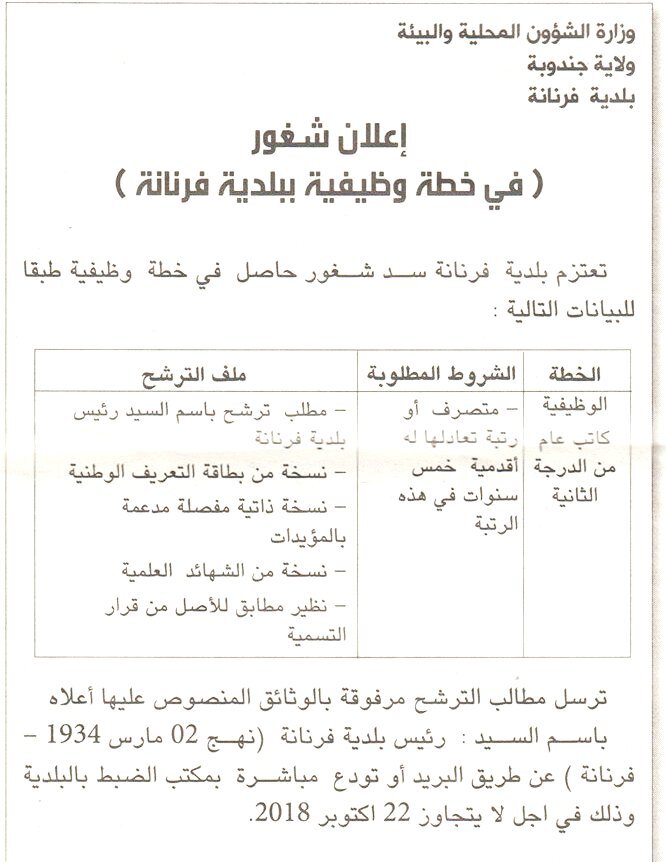 بلدية فرنانة تنتدب Annonces بلدية فرنانة تنتدب Partager : Cliquez pour partager sur Facebook(ouvre dans une nouvelle fenêtre) Facebook Cliquez pour partager sur LinkedIn(ouvre dans une nouvelle fenêtre) LinkedIn Plus Cliquer pour partager sur X(ouvre dans une nouvelle fenêtre) X Cliquer pour envoyer un lien par e-mail à un ami(ouvre dans une nouvelle fenêtre) E-mail Cliquez pour partager sur WhatsApp(ouvre dans une nouvelle fenêtre) WhatsApp Facebook