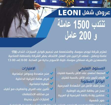 شركة ” ليوني Leoni ” تنتدب أكثر من 1700 عامل