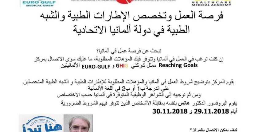 إن كنت ترغب في العمل في ألمانيا وتتوفر فيك المؤهلات المطلوبة، ما عليك سوى الاتصال بمركز Reaching Goals