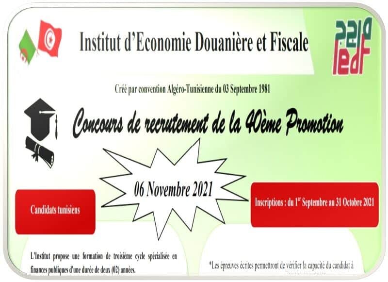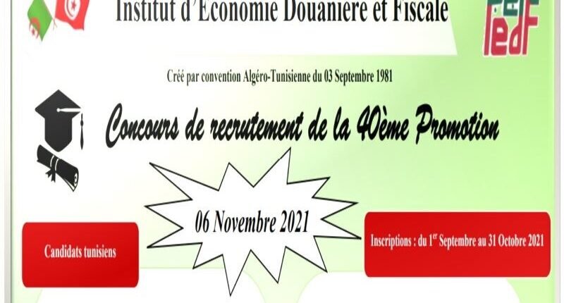 معهد الإقتصاد الجمركي والجبائي : بلاغ التسجيل بمناظرة إنتداب الدفعة الأربعون 40 المختصة في المالية العمومية