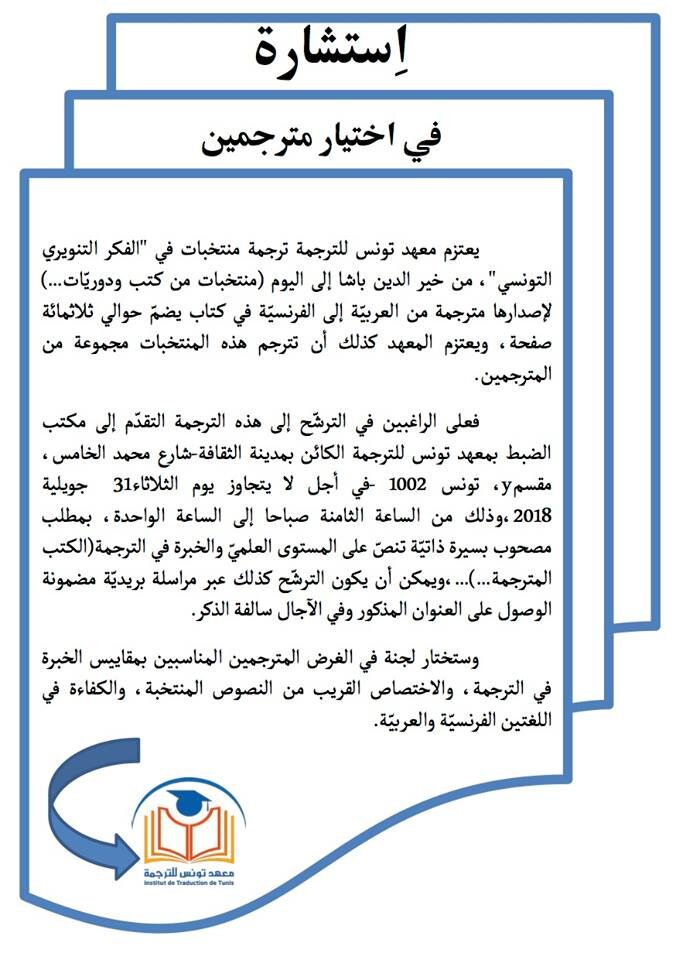 معهد تونس للترجمة // اختيار مترجمين Annonces استشارة في اختيار مترجمين معهد تونس للترجمة Partager : Cliquez pour partager sur Facebook(ouvre dans une nouvelle fenêtre) Facebook Cliquez pour partager sur LinkedIn(ouvre dans une nouvelle fenêtre) LinkedIn Plus Cliquer pour partager sur X(ouvre dans une nouvelle fenêtre) X Cliquer pour envoyer un lien par e-mail à un ami(ouvre dans une nouvelle fenêtre) E-mail Cliquez pour partager sur WhatsApp(ouvre dans une nouvelle fenêtre) WhatsApp Facebook