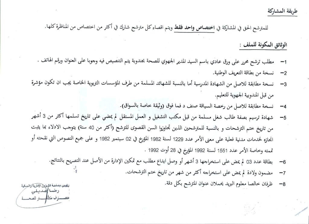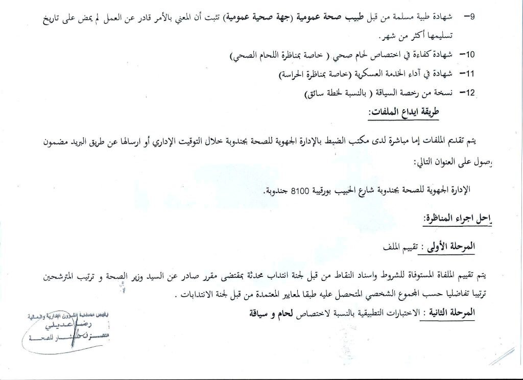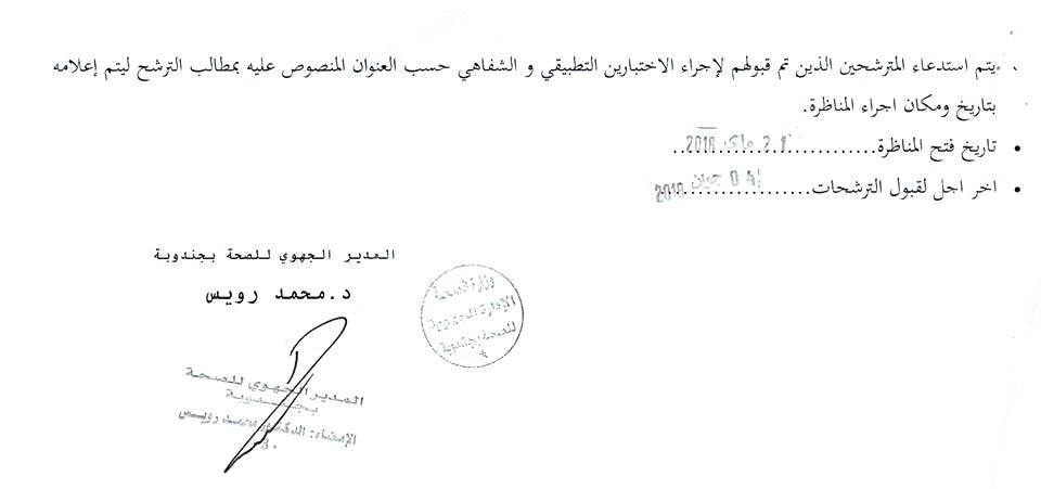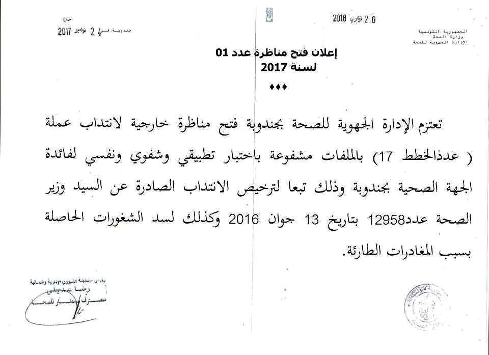 مناظرة الإدارة الجهوية للصحة بجندوبة
