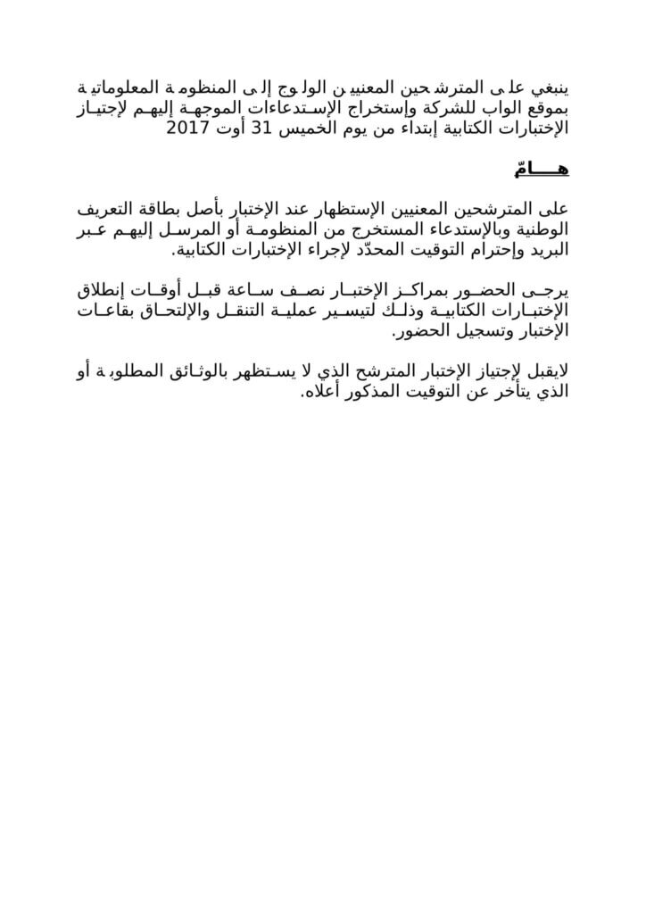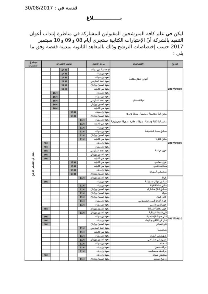 تعلن شركة فسفاط قفصة أنه تقرر رسميا إجراء الاختبارات الكتابية لمناظرة انتداب 1700 عون تنفيذ