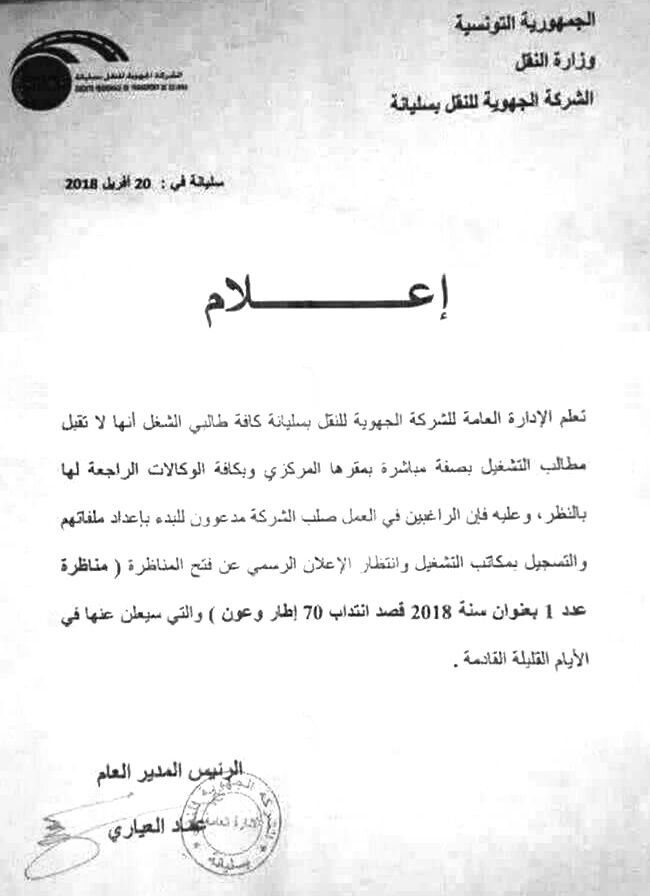 مناظرة شركة النقل بسليانة / Concours Société de Transport de Siliana