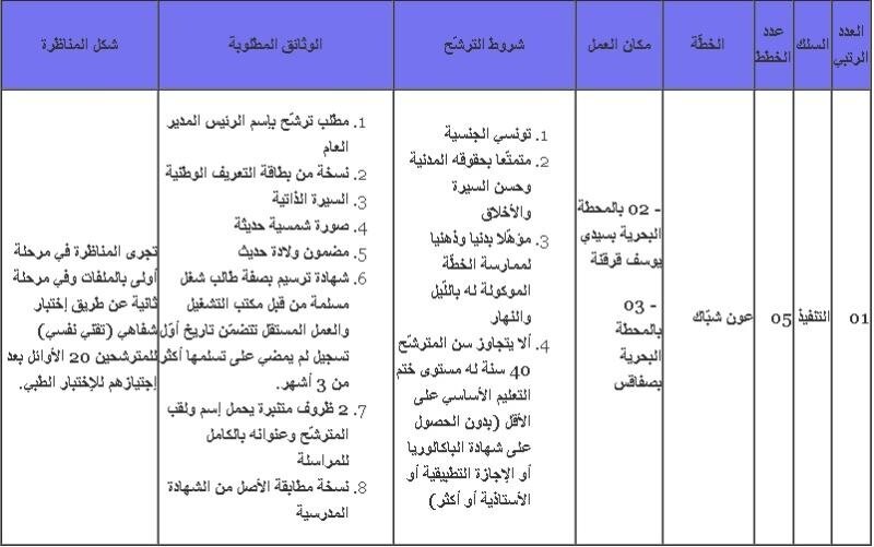 تعتزم الشركة الجديدة للنقل بقرقنة فتح مناظرة خارجية طبقا للبيانات المفصّلة بالجدول التالي: