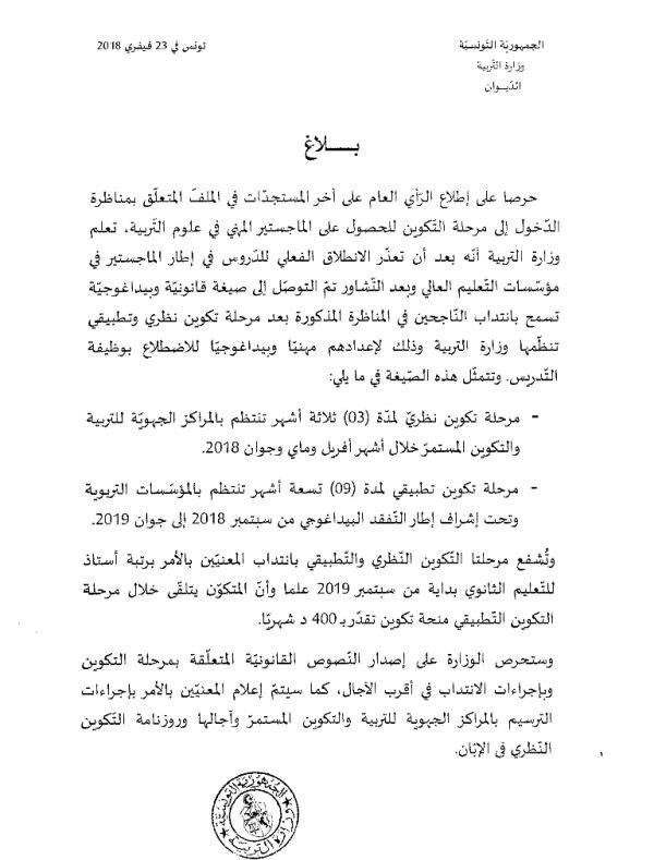 وزارة التربية: اخيرا سيتم انتداب الناجحين في مناظرة الماجستير المهني في علوم التربية – الكاباس 2017