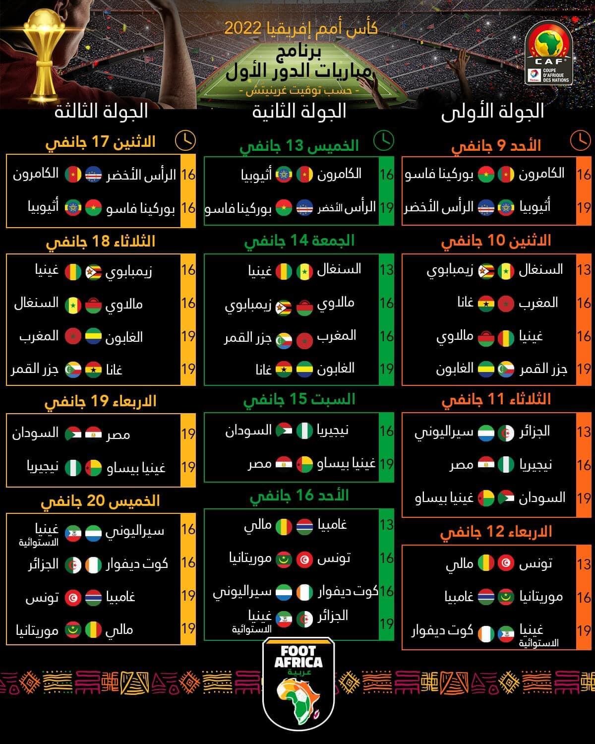 🏆 جدول مباريات كأس أمم إفريقيا 2022
