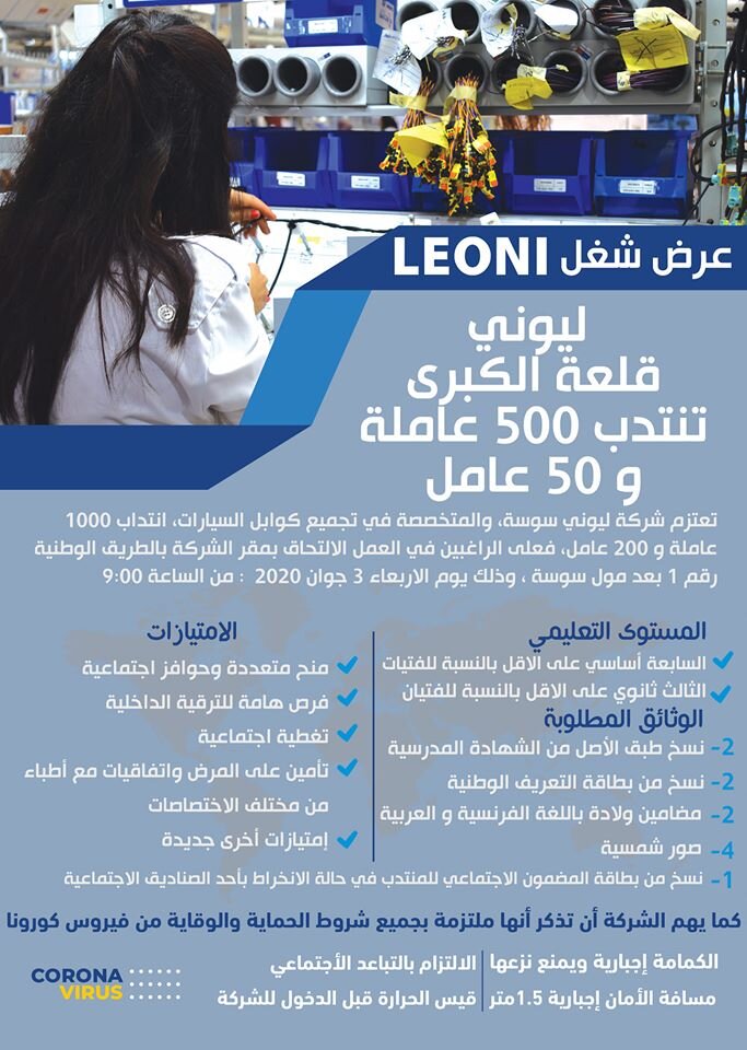 📢💥إنتداب 500عامله و 50 عامل بشركة leoni