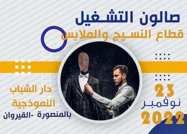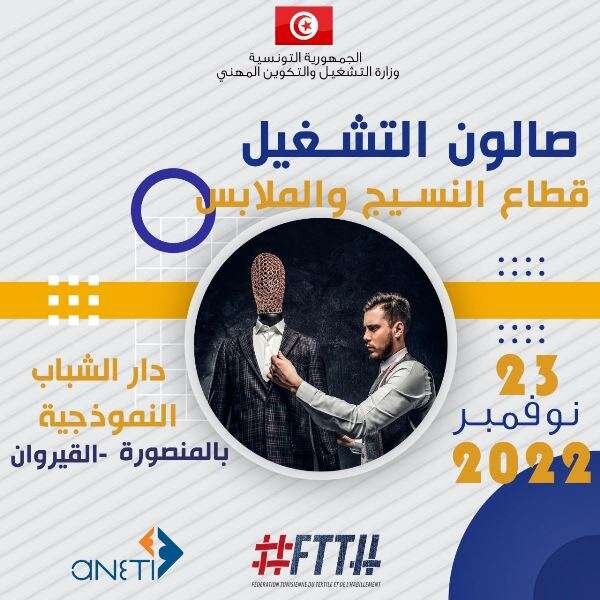 تنظم الوكالة الوطنية للتشغيل والعمل المستقل تحت إشراف وزارة التشغيل والتكوين المهني بالتنسيق مع الجامعة التونسية للنسيج والملابس الصالون الجهوي للتشغيل في قطاع النسيج والملابس