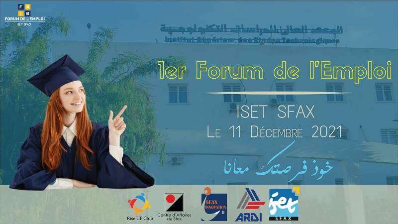l’Institut Supérieur des Études Technologiques de Sfax a l’honneur de vous annoncer la 1ère édition du Forum d’emploi en collaboration avec le Club Rise UP, l’ARDI, le Centre d’Affaires de Sfax, et la pépinière SFAX Innovation 2.