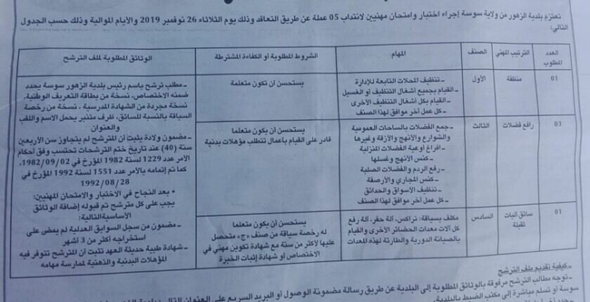 Read Moreبلاغ بلدية الزهور سوسة لانتداب 05 عملة < p dir= »rtl »>