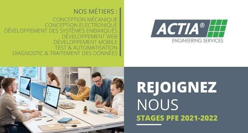 Read More[Teaser] 🏁 ACTIA Engineering Services lance bientôt sa campagne de stages PFE 2021/2022. Nos futurs stagiaires travailleront sur des projets innovants dédiés au secteur automobile, médical et énergie. L’occasion…