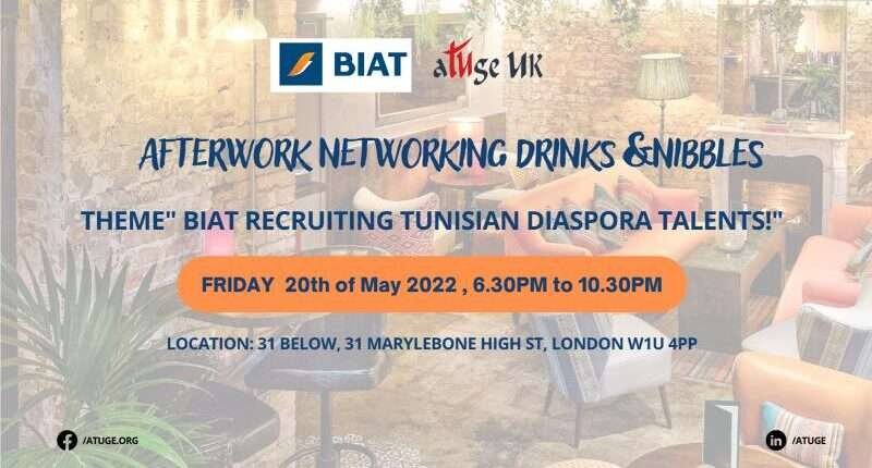 Read MoreATUGE UK is pleased to invite you to this after work drinks and nibbles in London. BIAT is visiting London and are looking to recuit Tunisian Diaspora from ATUGE UK…