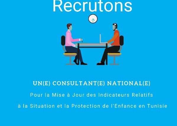 Read More𝐀𝐩𝐩𝐞𝐥 𝐚̀ 𝐜𝐨𝐧𝐬𝐮𝐥𝐭𝐚𝐭𝐢𝐨𝐧 𝗻𝗮𝘁𝗶𝗼𝗻𝗮𝗹𝗲 Recrutement d’un(e) consultant(e) nationale(e) pour la Mise à Jour des Indicateurs Relatifs à la Situation et la Protection de l’Enfance en Tunisie 100 Jours Ouvrables Clôture…