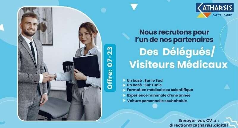Dans le cadre de son développement Laboratoire Pharmaceutique Recrute : Délégué(e) ou Visiteur(se) Médical(e) Base : Grand Tunis Conditions requises : · Techniciens Supérieurs de la Santé, Médecins, Pharmaciens, Médecins…