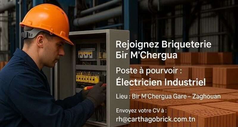 Read MoreOffre d’emploi : Électricien(ne) Industriel(le) Poulina Group Holding, leader sur le marché tunisien et acteur majeur dans divers secteurs, recrute un(e) Électricien(ne) Industriel(le) pour sa filiale Briqueterie Bir M’Chergua :…