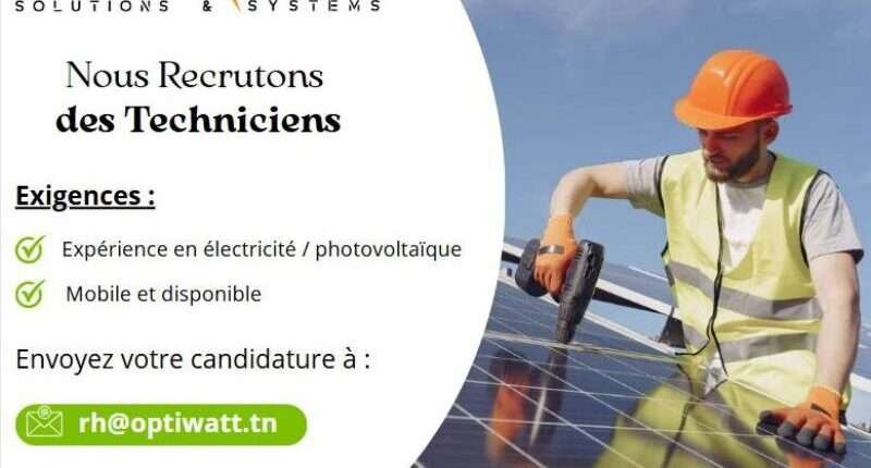Read MoreRecrutement – Électricien Photovoltaïque Nous recherchons un électricien pour l’installation et la maintenance de systèmes solaires photovoltaïques. Missions : pose de panneaux, câblage, raccordement, mise en service et maintenance. Profil…