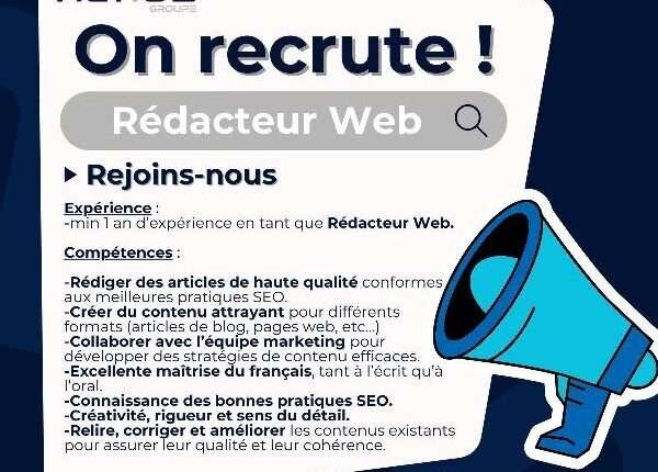 Rédacteur/rédactrice web en langue française DISPONIBILITÉ IMMÉDIATE – TEMPS PLEIN SHYRINE PROD est une agence de communication digitale de taille humaine basée à Tunis. Filiale de l’entreprise Digital Communication, notre agence…