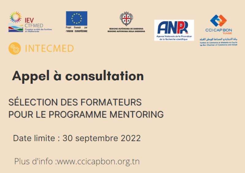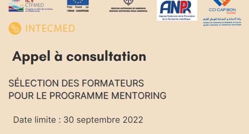 L’Agence Nationale de la Promotion de la Recherche scientifique (ANPR) et la Chambre de Commerce et d’Industrie du Cap Bon (CCI Cap Bon), lancent une consultation commune pour la sélection d’experts « Service de formation» dans le cadre du projet INTECMED (Programme ENI CBC MED 2014-2020).