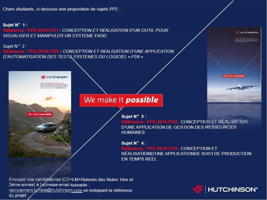 Catalogue des stages PFE 2019 [ à Hutchinson] Annonces, Stages / PFE S’abonner à notre NEWSLETTER Recevoir tous les offres d'emploi ✅ Regarder la chaine à Recruter.TV Catalogue des stages PFE 2019 [ à Hutchinson] OFFRE de Stage PFE S’abonner à notre NEWSLETTER Recevoir tous les offres d'emploi ✅ Regarder la chaine à Recruter.TV Partager : Cliquez pour partager sur Facebook(ouvre dans une nouvelle fenêtre) Facebook Cliquez pour partager sur LinkedIn(ouvre dans une nouvelle fenêtre) LinkedIn Plus Cliquer pour partager sur X(ouvre dans une nouvelle fenêtre) X Cliquer pour envoyer un lien par e-mail à un ami(ouvre dans une nouvelle fenêtre) E-mail Cliquez pour partager sur WhatsApp(ouvre dans une nouvelle fenêtre) WhatsApp Facebook