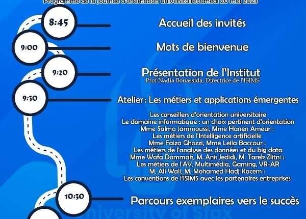 Read MoreJPO orientation universitaire ISIMS 2023 Programme de la journée d’orientation universitaire Samedi 20 mai 2023 Les perspectives dans le domaine de l’informatique : Métiers et applications émergentes Le domaine informatique…