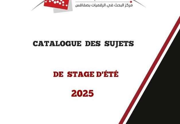 Découvrez le catalogue des sujets de stage d’été 2025 du Centre de Recherche en Numérique de Sfax Vous êtes un étudiant(e) en ingénierie informatique, électronique, multimédia, industrielle ou d’autres spécialités…