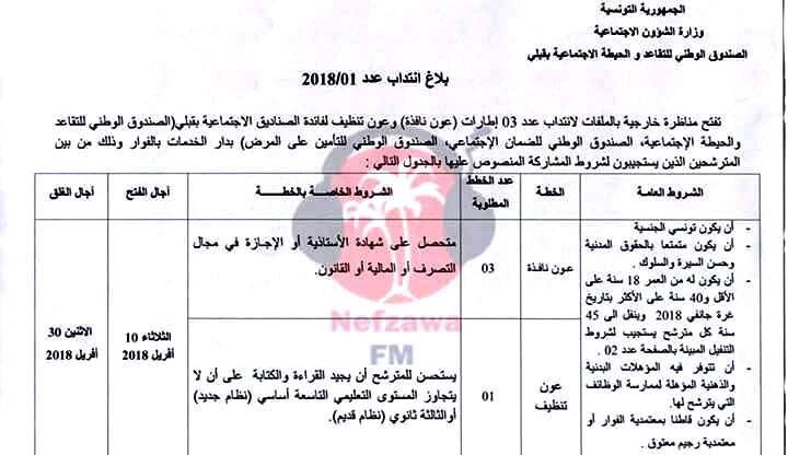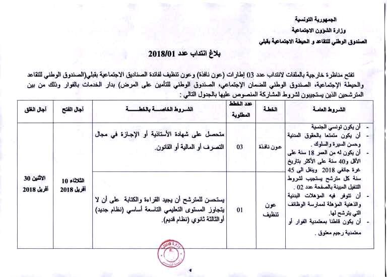 CONCOURS – CNRPS ||| مناظرة – الصندوق الوطني للتقاعد و الحيطة الإجتماعية Concours مناظرة خارجية بالملفات لانتداب عدد03 اطارات وعون تنظيف لفائدة الصناديق الاجتماعية بدار الخدمات بالفوار . S’abonner à notre NEWSLETTER Recevoir tous les offres d'emploi ✅ Regarder la chaine à Recruter.TV S’abonner à notre NEWSLETTER Recevoir tous les offres d'emploi ✅ Regarder la chaine à Recruter.TV Partager : Cliquez pour partager sur Facebook(ouvre dans une nouvelle fenêtre) Facebook Cliquez pour partager sur LinkedIn(ouvre dans une nouvelle fenêtre) LinkedIn Plus Cliquer pour partager sur X(ouvre dans une nouvelle fenêtre) X Cliquer pour envoyer un lien par e-mail à un ami(ouvre dans une nouvelle fenêtre) E-mail Cliquez pour partager sur WhatsApp(ouvre dans une nouvelle fenêtre) WhatsApp Facebook
