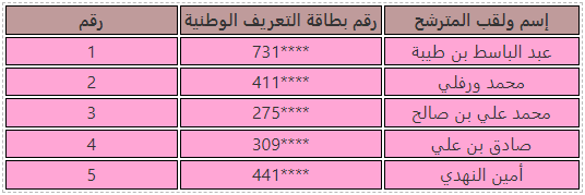 • الذين لم يتم ذكرهم بالقائمة أعلاه من بين المترشحين الآتي ذكرهم لا غير