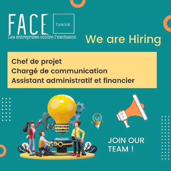 Dans le cadre de l’expansion continue de nos activités, la Fondation Agir Contre l’Exclusion (FACE Tunisie) recrute actuellement3 jeunes