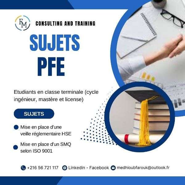 • FM Consulting and Training acteur socialement responsable et partenaire des universités lance deux Projets de Fin d’Études (PFE) 🎓 pour l’année 2024-2025 :