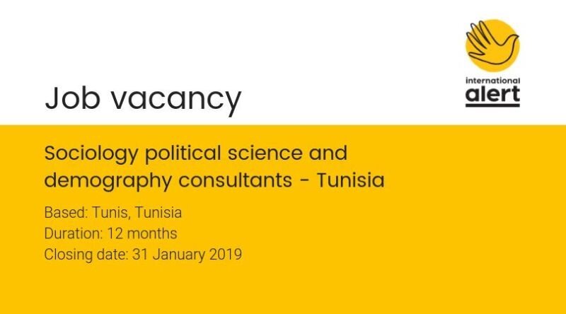 S’abonner à notre NEWSLETTER Recevoir tous les offres d'emploi ✅ Regarder la chaine à Recruter.TV We are recruiting three experts in sociology, political science and demography to undertake quantitative and qualitative research on youth and urban violence in popular areas of greater Tunis.