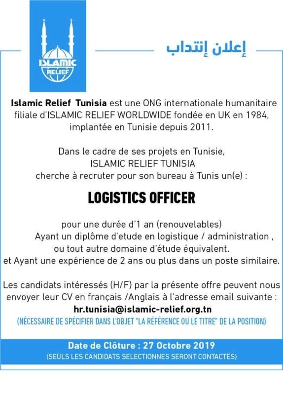 – To oversee the logistical operations in relation to Islamic Relief Tunisia operations. This will include establishing logistical systems for the management of goods, personnel and resources and acquiring and managing office accommodations and storage facilities.
