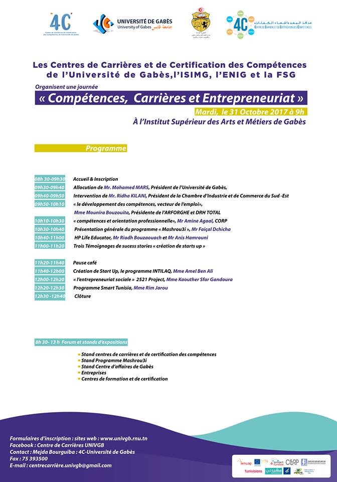 Programme de la Journée « Carrières, Compétences et Entrepreneuriat»… Mardi, le 31 Octobre 2017
