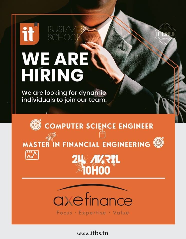 Notre partenaire Axe Finance se mobilise pour une action concrète de « Job Dating » qui permettra de rencontrer les étudiants de IT Business School en classe terminale ou même des alumini (Mastère finance et/ou cycle ingénieur).