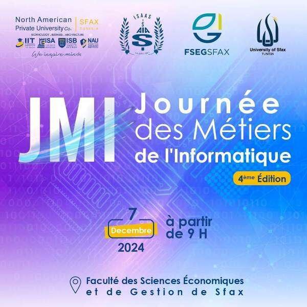 La Faculté des Sciences Economiques et de Gestion de Sfax, en partenariat avec l’Institut Supérieur d’Administration des Affaires de Sfax et l’Institut International de Technologies, organise la quatrième édition de la Journée des Métiers en Informatique.