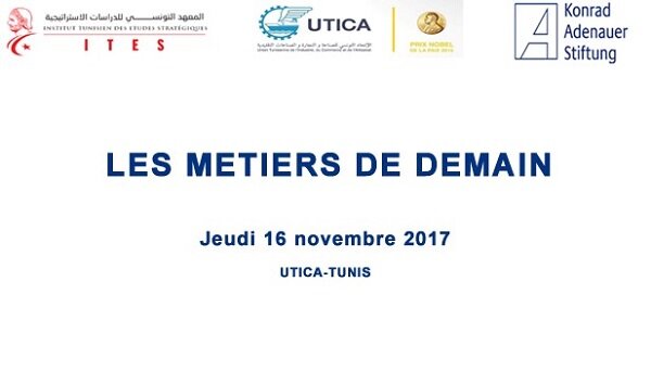 L’UTICA Academy et l’ITES (Institut tunisien des études stratégiques)et la KAS (Fondation Konrad Adenauer) organisent une journée d’étude sur les « Métiers de demain », et ce, le jeudi 16 novembre 2017, au centre de congrès de l’UTICA.