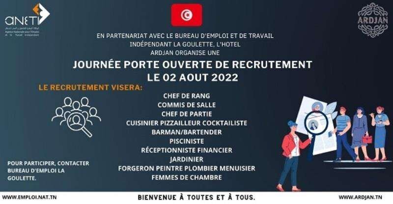 Le Bureau de l’Emploi et du Travail Indépendant de la Goulette organise des séances d’information pour les chercheurs d’emploi qui désirent travailler dans le domaine du tourisme. Plusieurs offres d’emploi sont disponibles.