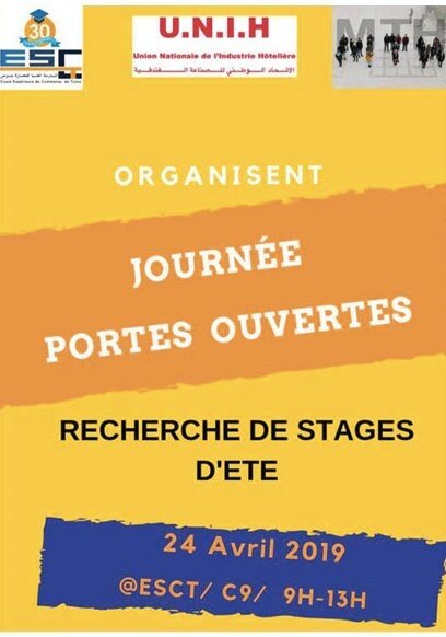 Demain mercredi 24 avril 2019 de 9h à 12h, Journée recrutement d’étudiants «JOB d’ETE» à l’Ecole Supérieure de Commerce de Tunis (ESCT) à l’université de La Manouba,