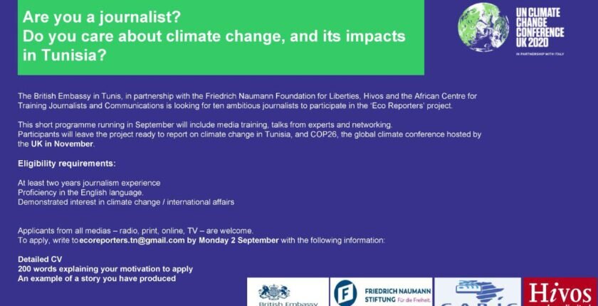 Êtes-vous journaliste?Le changement climatique et ses répercussions en Tunisie vous intéressent ?