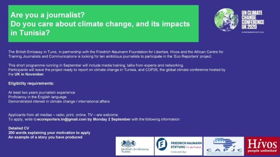 Êtes-vous journaliste?Le changement climatique et ses répercussions en Tunisie vous intéressent ?
