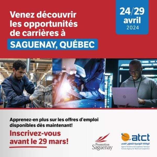 L’Agence Tunisienne de Coopération Technique (ATCT) en collaboration avec Promotion Saguenay, organiseune mission de recrutement