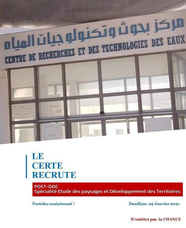 Le  Centre  de  Recherches  et  des  Technologies  des  Eaux  (CERTE)   / recrute [appel  à  candidature n°2]