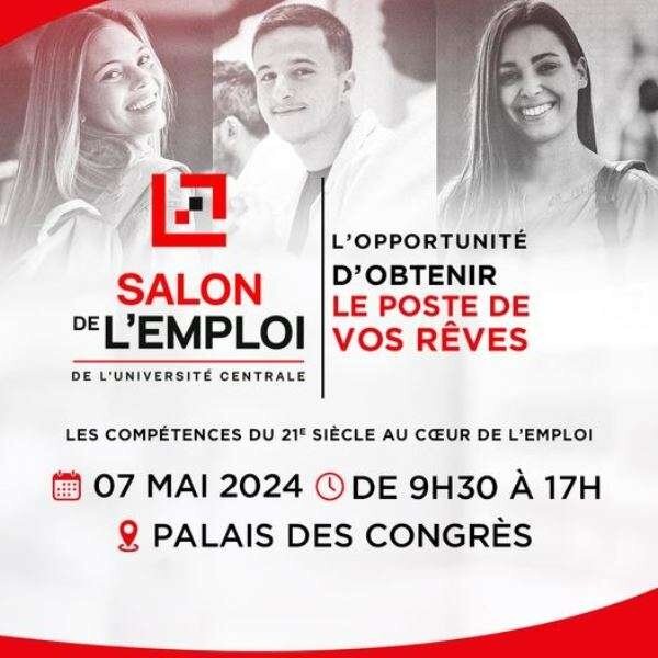- Le Salon de l’Emploi annuel de l’Université Centrale est de retour le 07 Mai 2024 au Palais de Congrès. Comme chaque année, cet événement prestigieux vous offre une opportunité unique de rencontrer les plus grandes entreprises nationales et multinationales, de décrocher des stages de rêve et des emplois à la hauteur de vos ambitions.